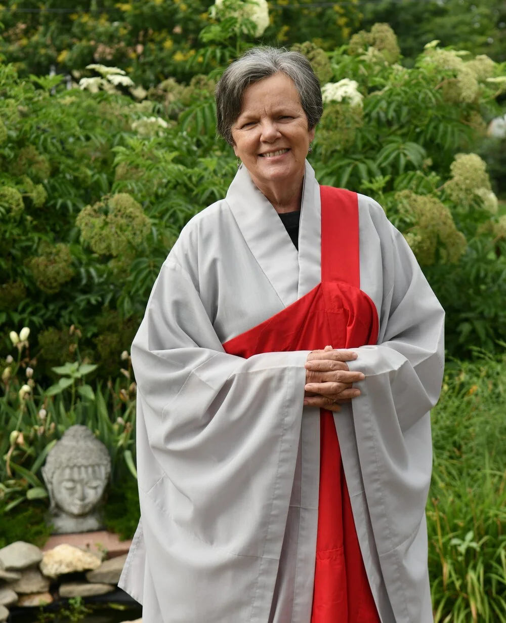 Rebecca Otte, JDPSN began practicing Zen meditation in 1995, and received Inka (permission to teach) in December 2020. She is a founding member of Prairyerth Zen Center in Topeka, Kansas, where she lives with her husband, Ken. She is retired from her profession as a nurse midwife and will be here on Friday, October 10, 2025 for a special Dharma Talk instead of the usual Thursday night.